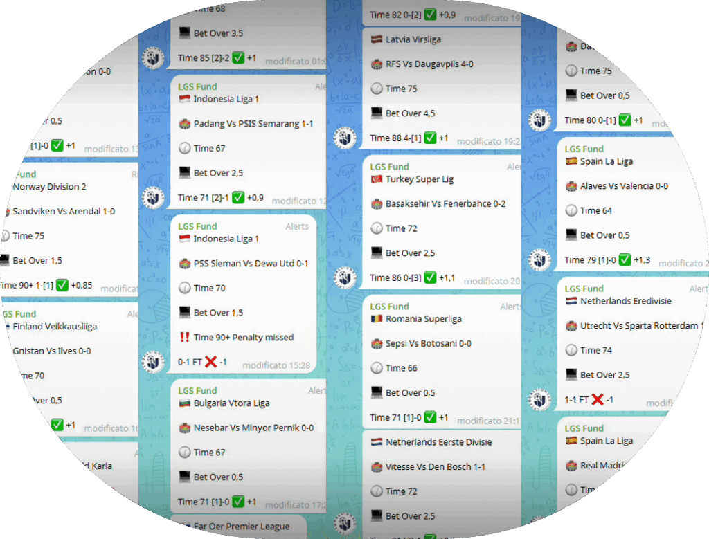Late Goal Signals is simple and intuitive, with easy-to-follow, minimalistic signals. We send LGS Fund signals in our private Telegram group during the last 30 minutes of football matches.