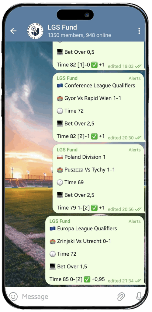 The signals are linked to our LGS Fund, which is among the best-performing sports investment funds worldwide, with an average monthly growth of 49,5% and a record of +73,5% in May 2025. The fund’s performance is updated daily and can be checked at any time. We also share some signals in our free public group, where daily signals sent in the private group are reported.